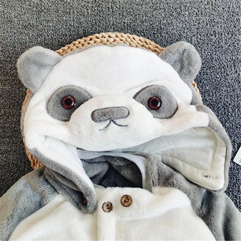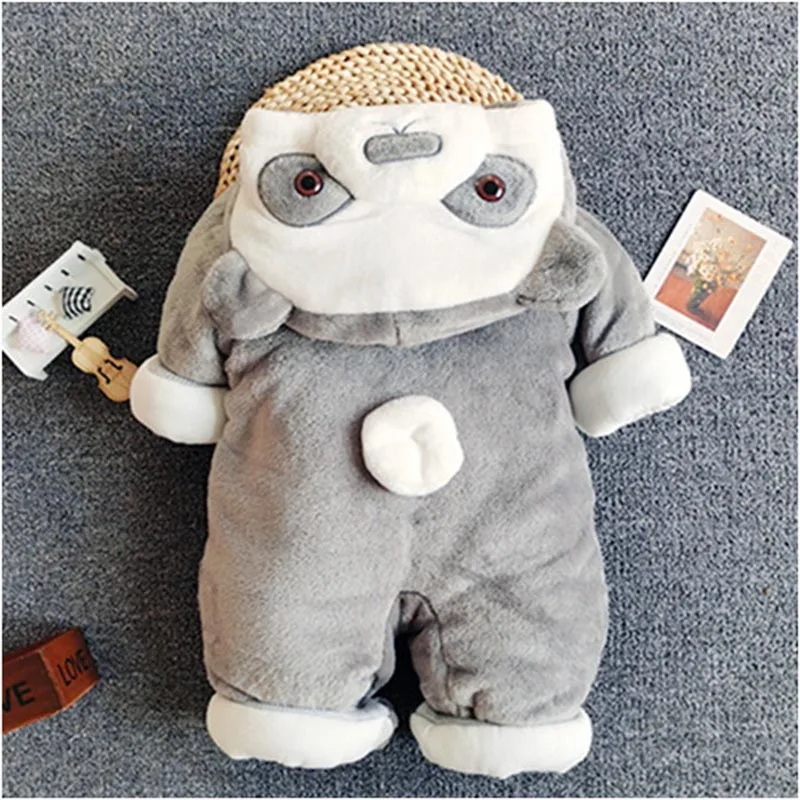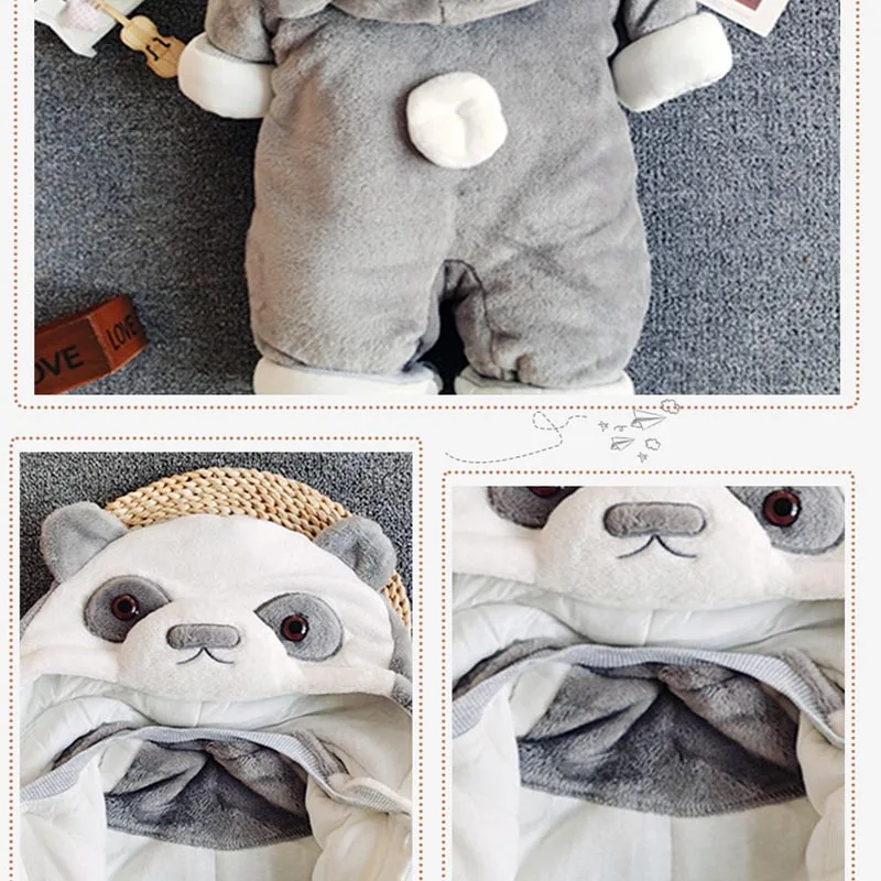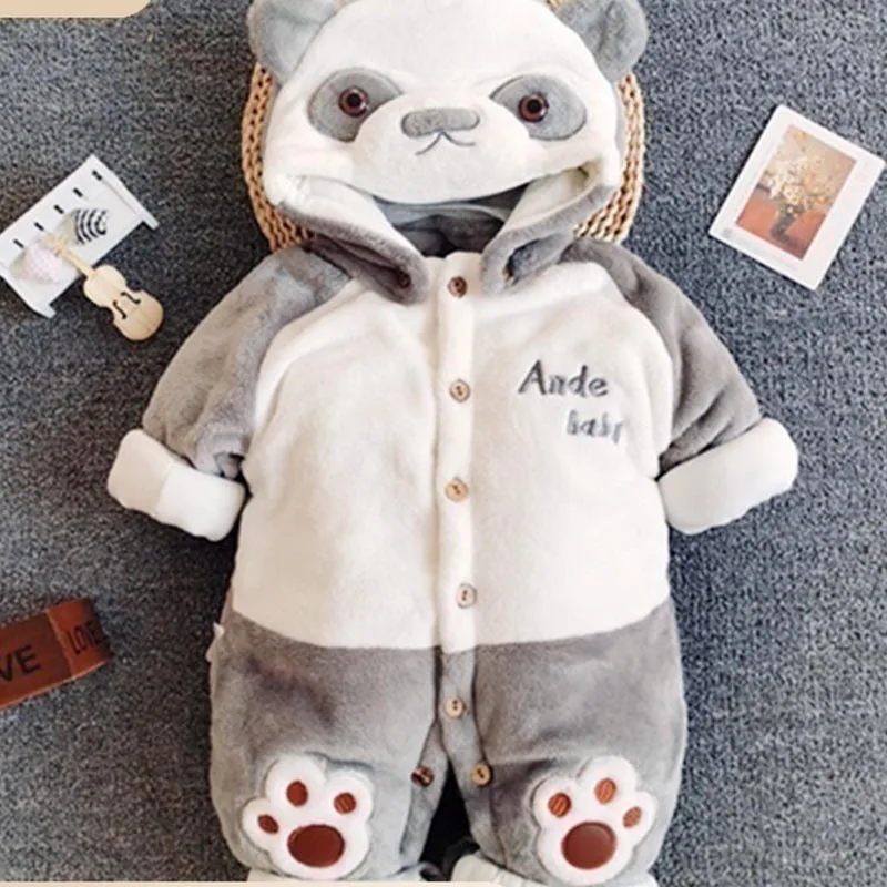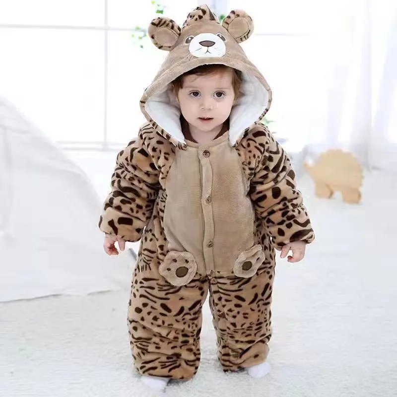 Winter Warm Hoodied Baby Rompers for Boy Girl Cartoon Ear Hood Fleece Onesies Infant Jumpsuits Pyjamas Sleepwear Toddler Overall
